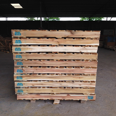 Gỗ sau khi được cưa xẻ sẽ để vào trong lò sấy sau 20 ngày sẽ mở lò. Sau đó mang về cắt đóng thành hình Pallet